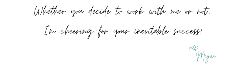 Within your Strategy & Action Plan, you'll receive a link to schedule a Complimentary 3-Month Check-In with me. We can use this time to check on the status of your goals, address any questions or struggles you have, or simply catch up and talk about your success!
